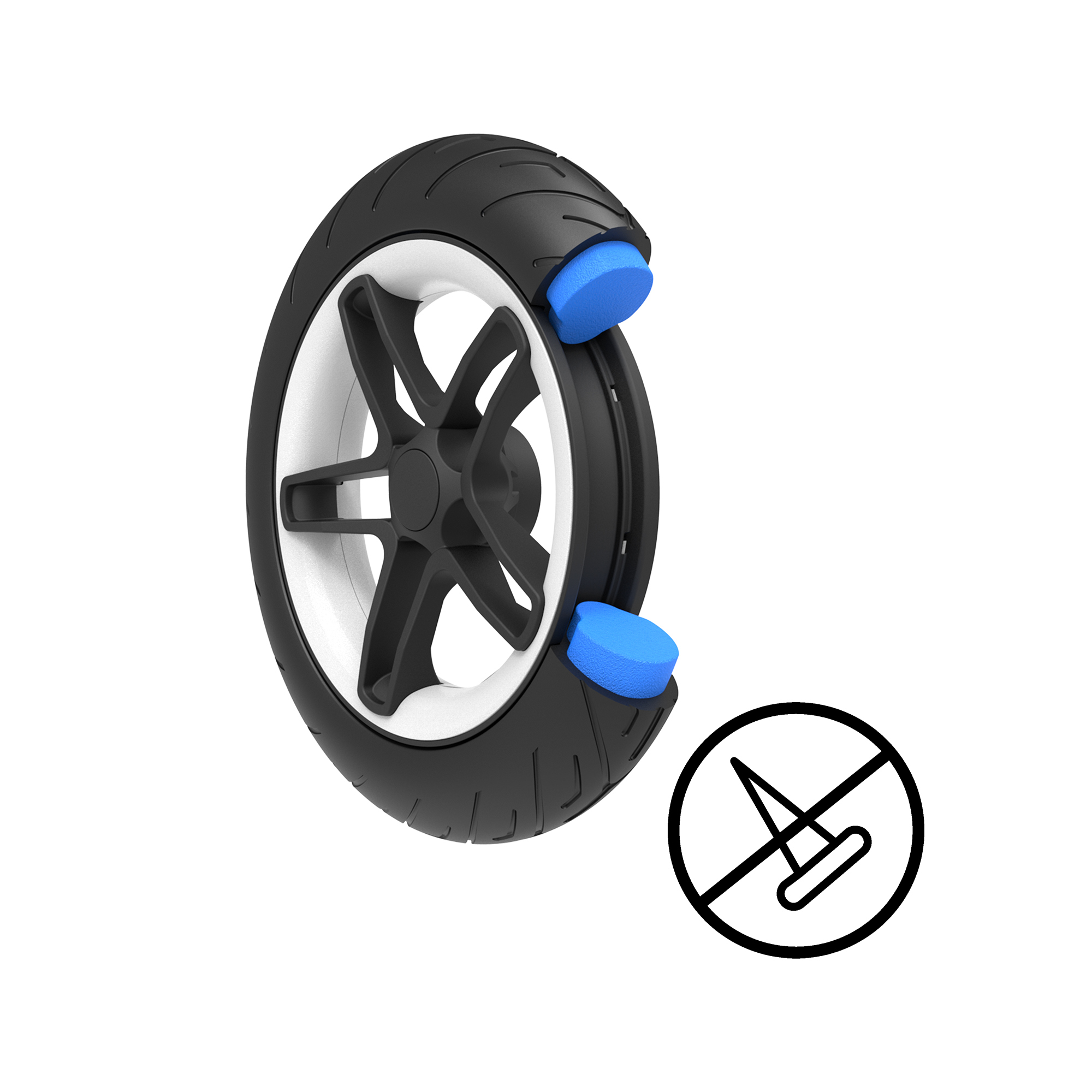 Die gut gefederten und langlebigen Talos S Lux Räder sorgen dafür, dass abenteuerlustige Eltern jedes Geländes bewältigen.